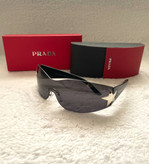 این عینک با لنز تیره یکتکه، طراحی کاملاً اسپرت و آیندهنگر دارد. قسمت کناری لوگوی پرادا به شکل ستاره روی فریم دیده میشود. مدل بهصورت Wrap طراحی شده و برای محافظت در برابر نور عالی است. مناسب برای استفاده روزمره، رانندگی ، استایلهای مینیمال و ورزش.