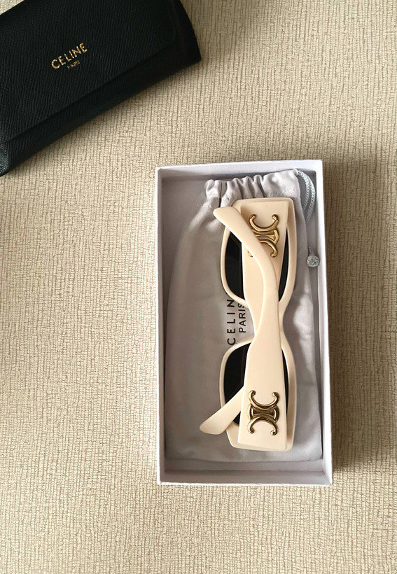 این عینک از Celine با فریم سفید کرمی و لنزهای مشکی، طراحی بسیار ساده اما لوکس دارد. فریم خوشساخت آن باعث میشود روی صورت بسیار طبیعی و سبک بنشیند. مناسب برای استایلهای رسمی، نیمهرسمی و روزمره. این مدل برای کسانی است که به دنبال یک عینک شیک، سبک و بسیار کاربردی هستند. لوگوی طلایی Celine روی دستهها بهزیبایی خودنمایی میکند.